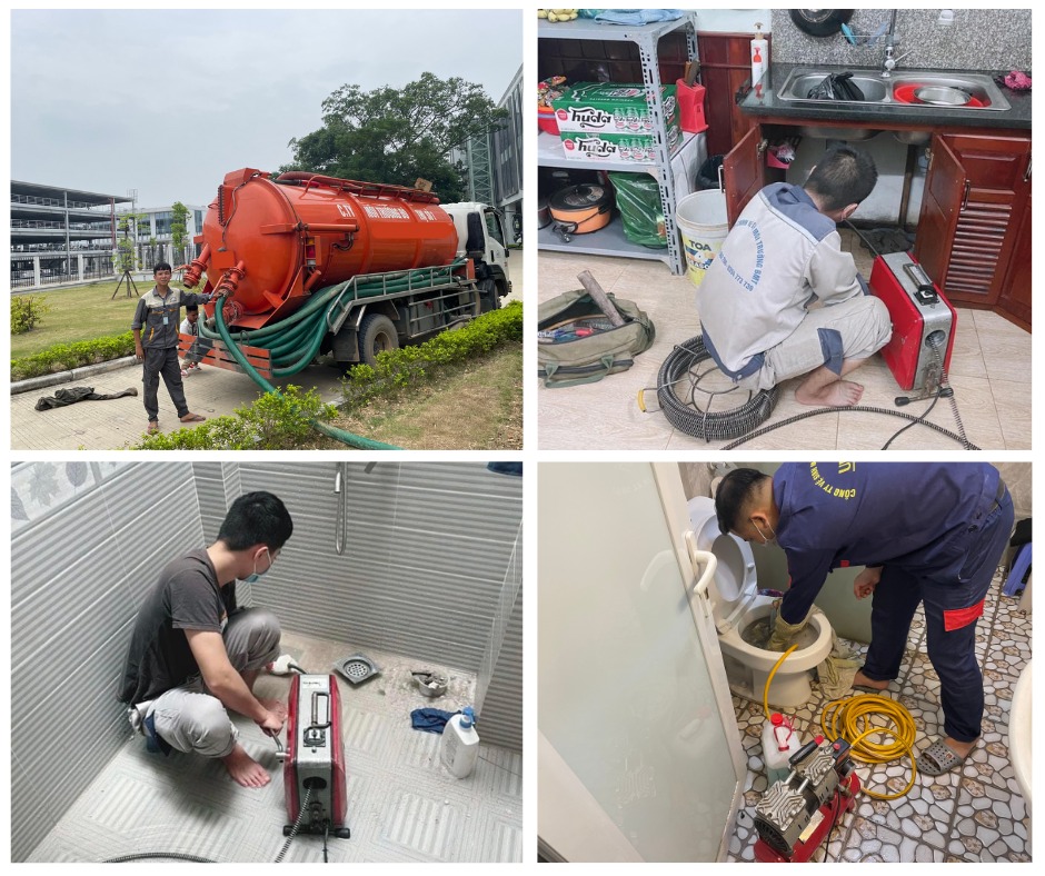 - Thông tắc cống, thoát sàn, nhà vệ sinh.